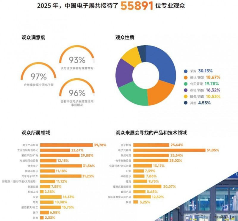 中国电子展起始于1964年,是中国历史最悠久、最权威的电子信息行业展会。中国电子展以领先的基础电子技术,促进中国电子产业自主创新;搭建产业供需和技术交流平台,极大推动了行业发展,见证中国电子信息产业发展壮大的成长的过程。